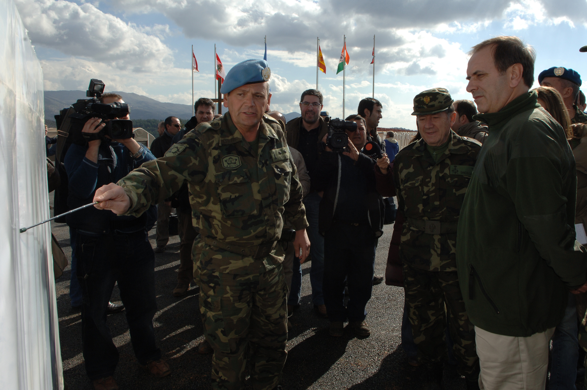El ministro de Defensa durante su visita a las tropas en el Libano