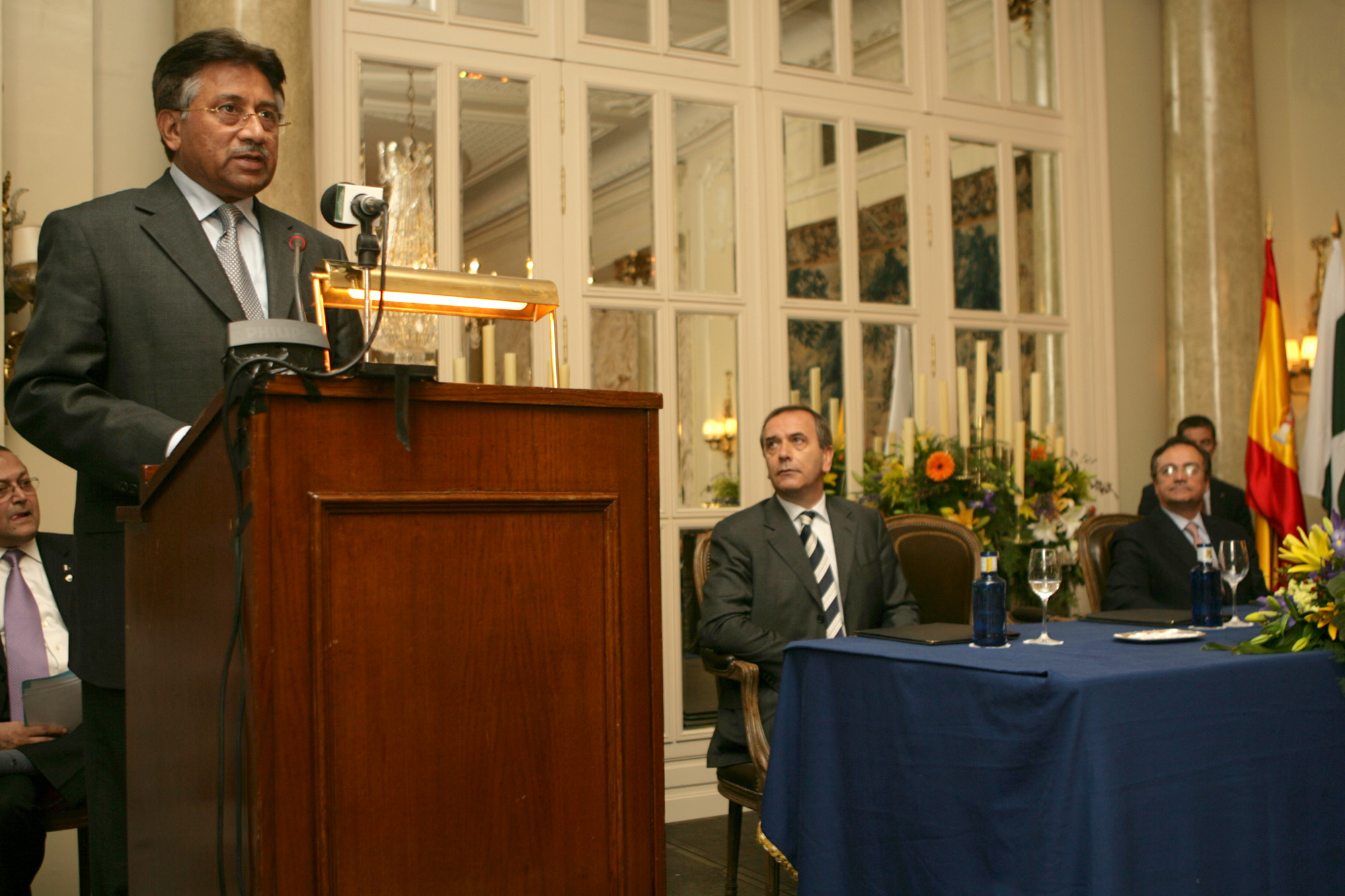 Pervez Musharraf, presidente de la República Islámica de Pakistán, durante su intervención en el hotel Ritz de Madrid