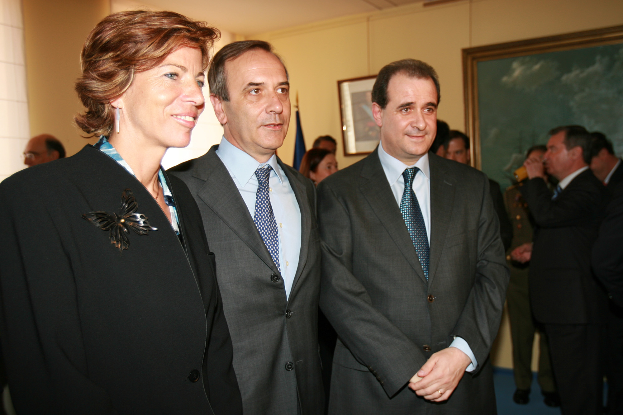 El ministro José Antonio Alonso junto al exsecretario de Defensa, Francisco Pardo y su sucesora en el cargo, Soledad López