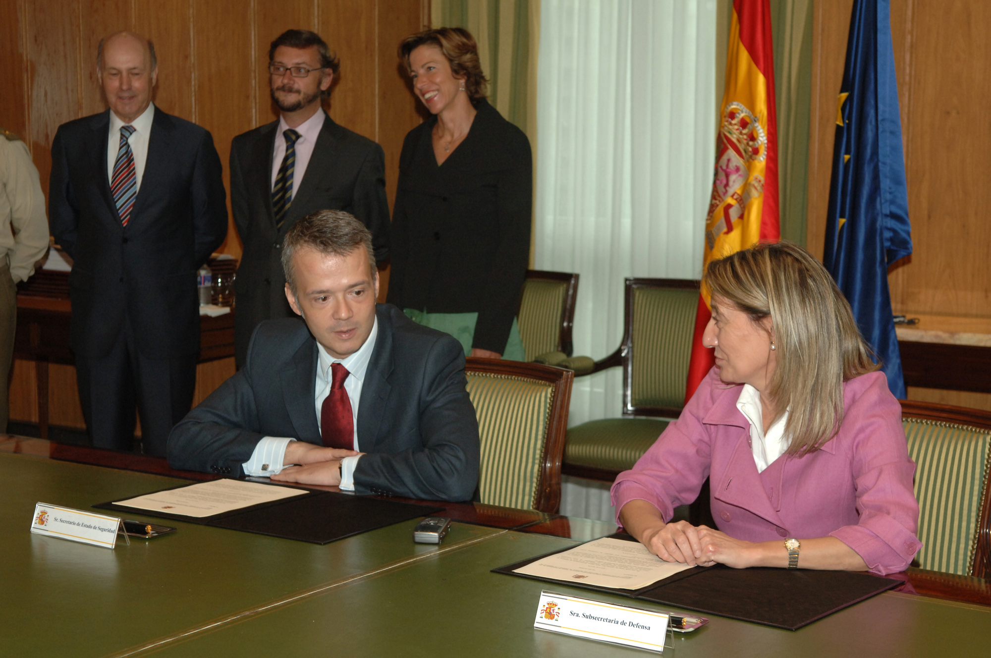 La subsecretaria de Defensa, María Victoria San José y el secretario de Estado de Seguridad, Antonio Camacho, han firmado hoy un convenio en el Ministerio de Defensa