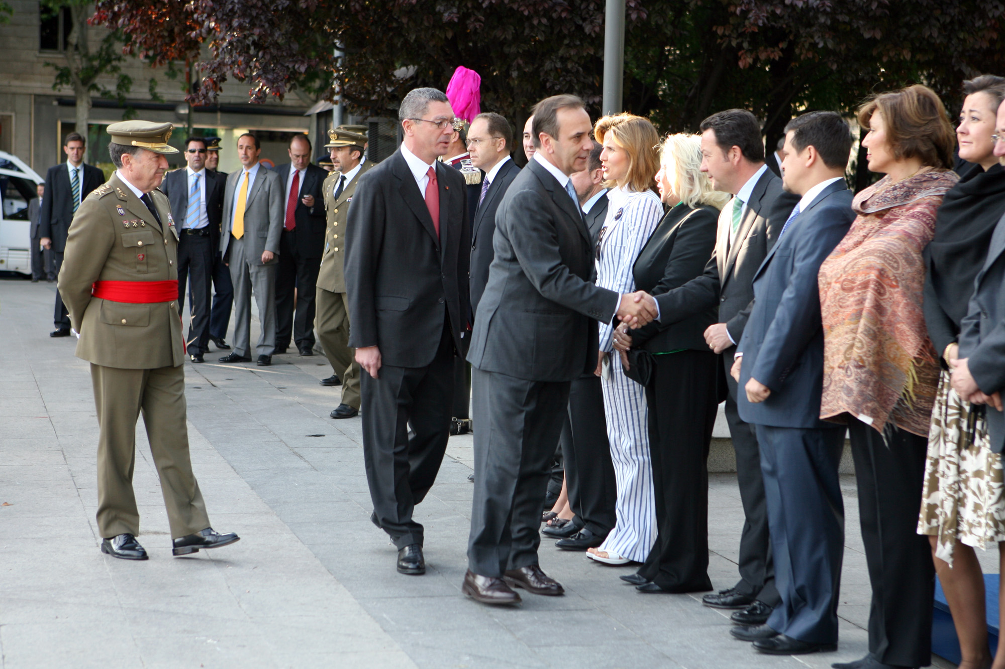 El ministro de Defensa, José Antonio Alonso, saluda a la corporación municipal en la plaza de Colón de Madrid