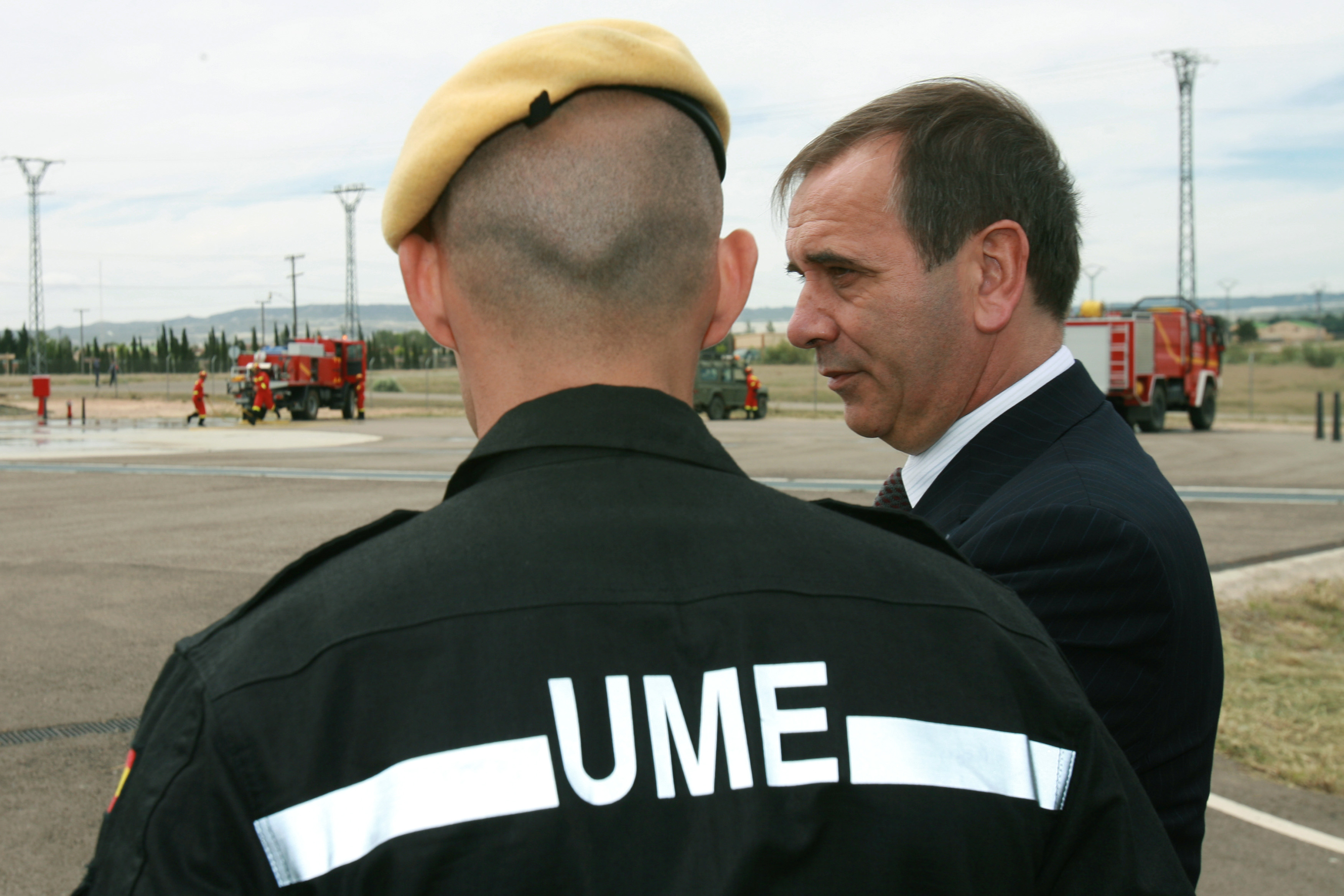 El ministro Alonso durante la exhibición del IV Batallón de Intervención de Emergencias