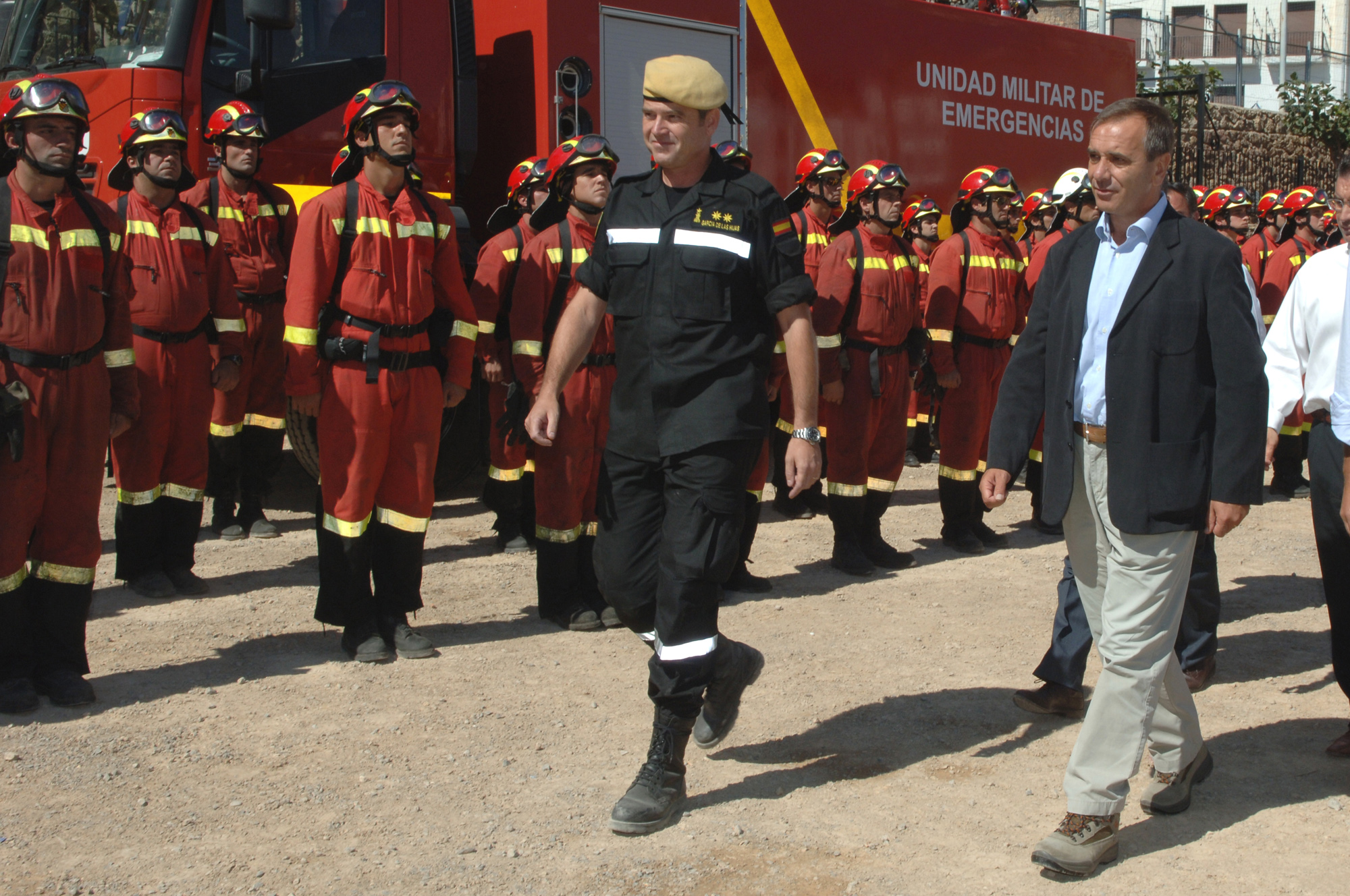 El ministro Alonso pasa revista a la Unidad Militar de Emergencias desplegada en Castellón con motivo de los incendios