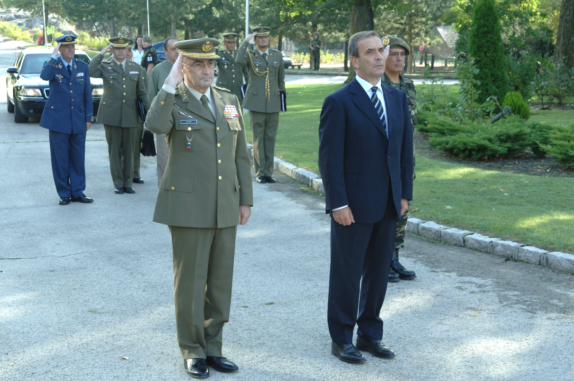 El ministro de Defensa recibe honores a cargo de un piquete a la entrada del edificio San Fernando