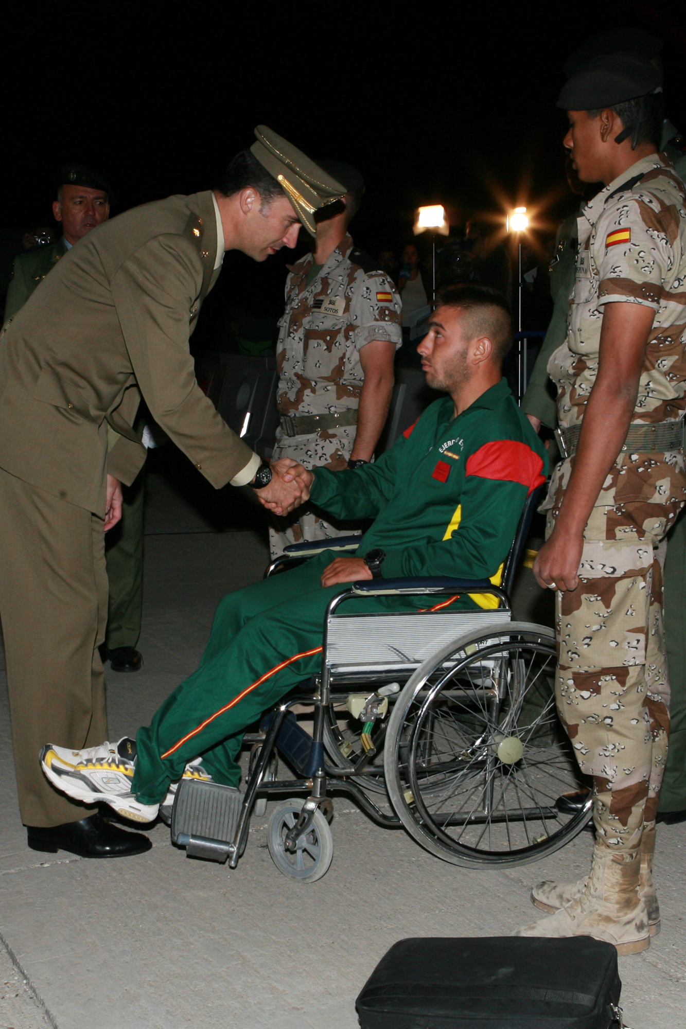 Su Alteza Real el Príncipe de Asturias saluda a uno de los soldados heridos en Afganistán