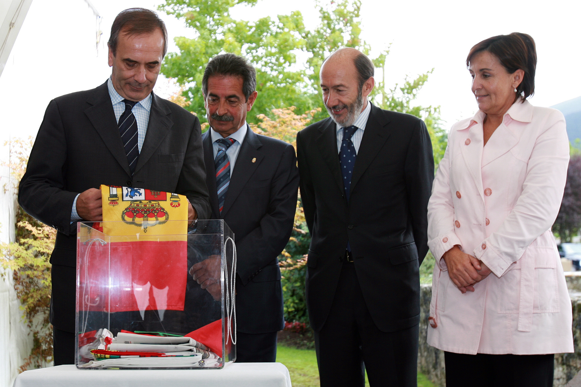 Los ministros de Defensa y de Interior, José Antonio Alonso y Alfredo Pérez Rubalcaba, han presidido hoy el acto de colocación de la primera piedra de las obras de ampliación de la Yeguada Militar de Ibio (Cantabria)