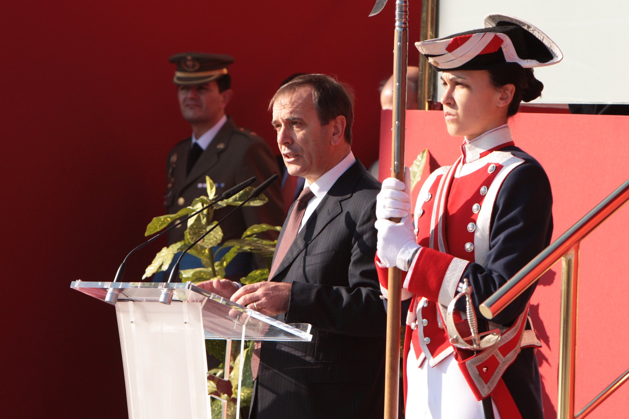 El ministro de Defensa, José Antonio Alonso durante su alocución