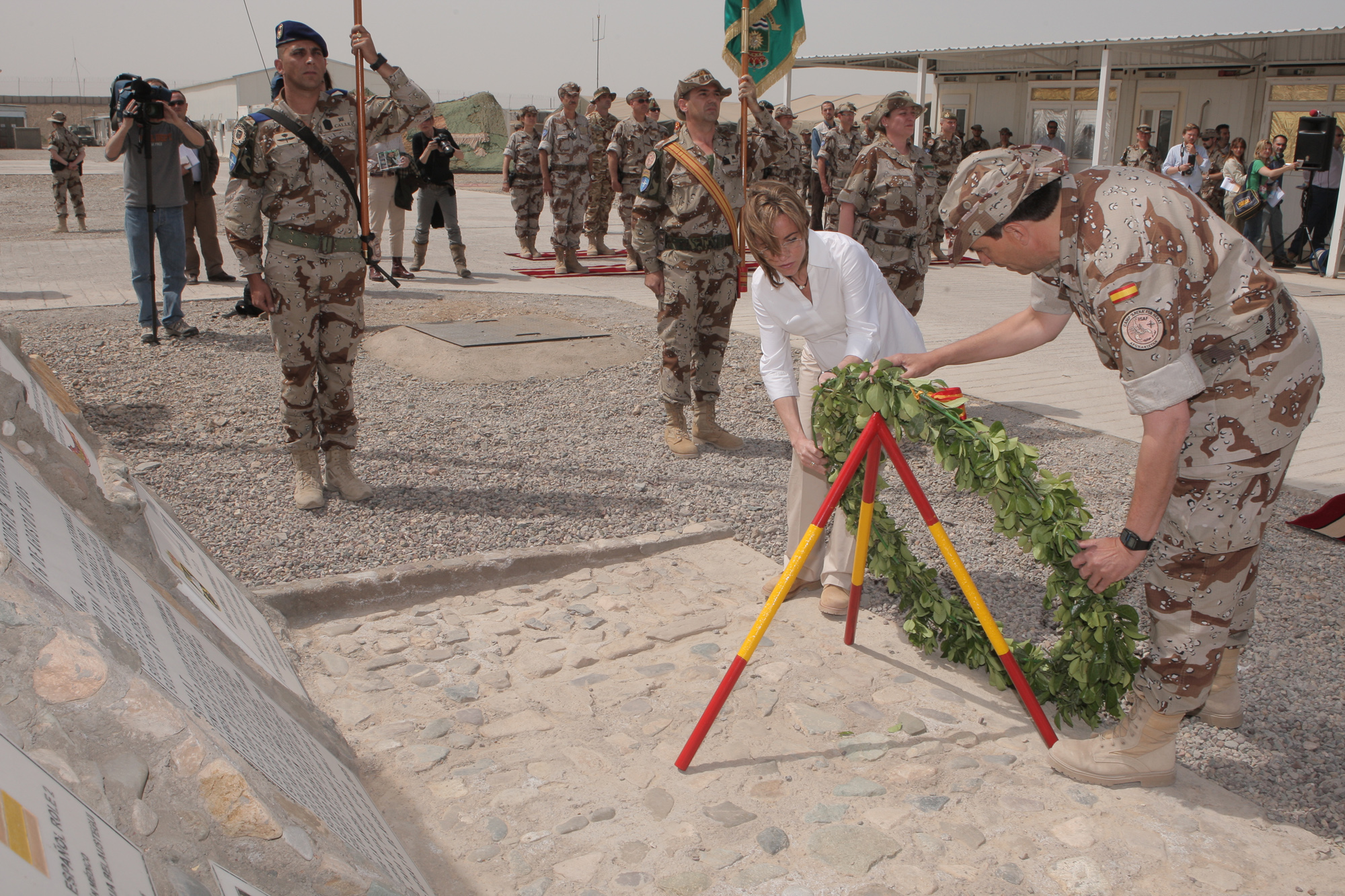 La ministra Chacón junto con el coronel Fontecha depositan una corona en el acto de homenaje a los caidos