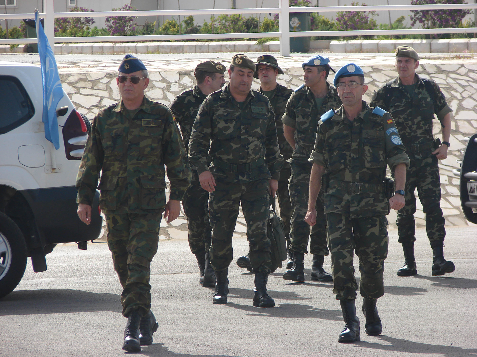 El jefe del Mando de Operaciones del Estado Mayor de la Defensa (CMOPS), teniente general Andrés Navas Ráez, es recibido por el general Juan Bautista García Sánchez, jefe de la Legión y de la Brigada Multinacional Este