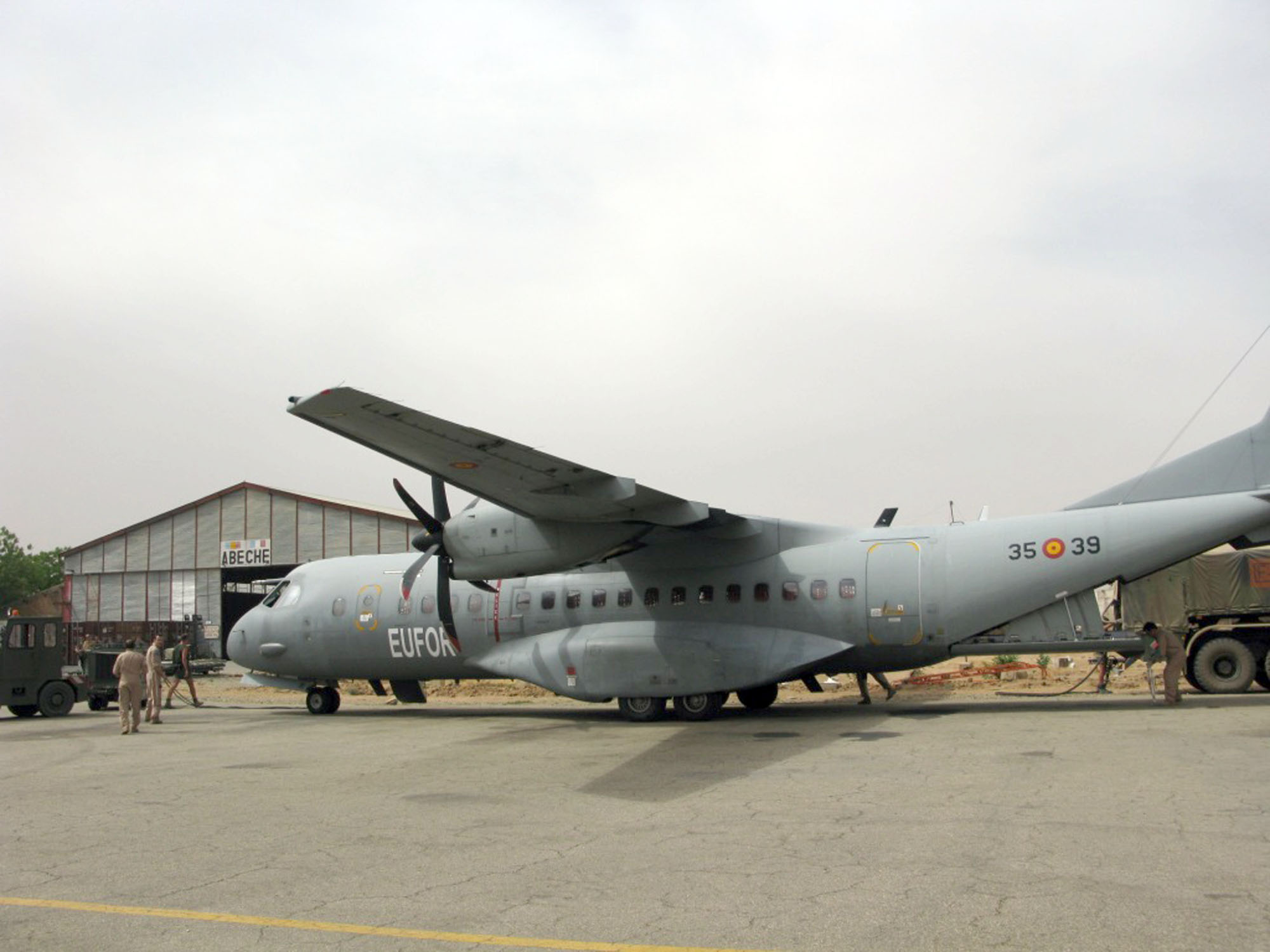 CN 295 del Ejército del Aire que opera en la zona transporta ayuda humanitaria