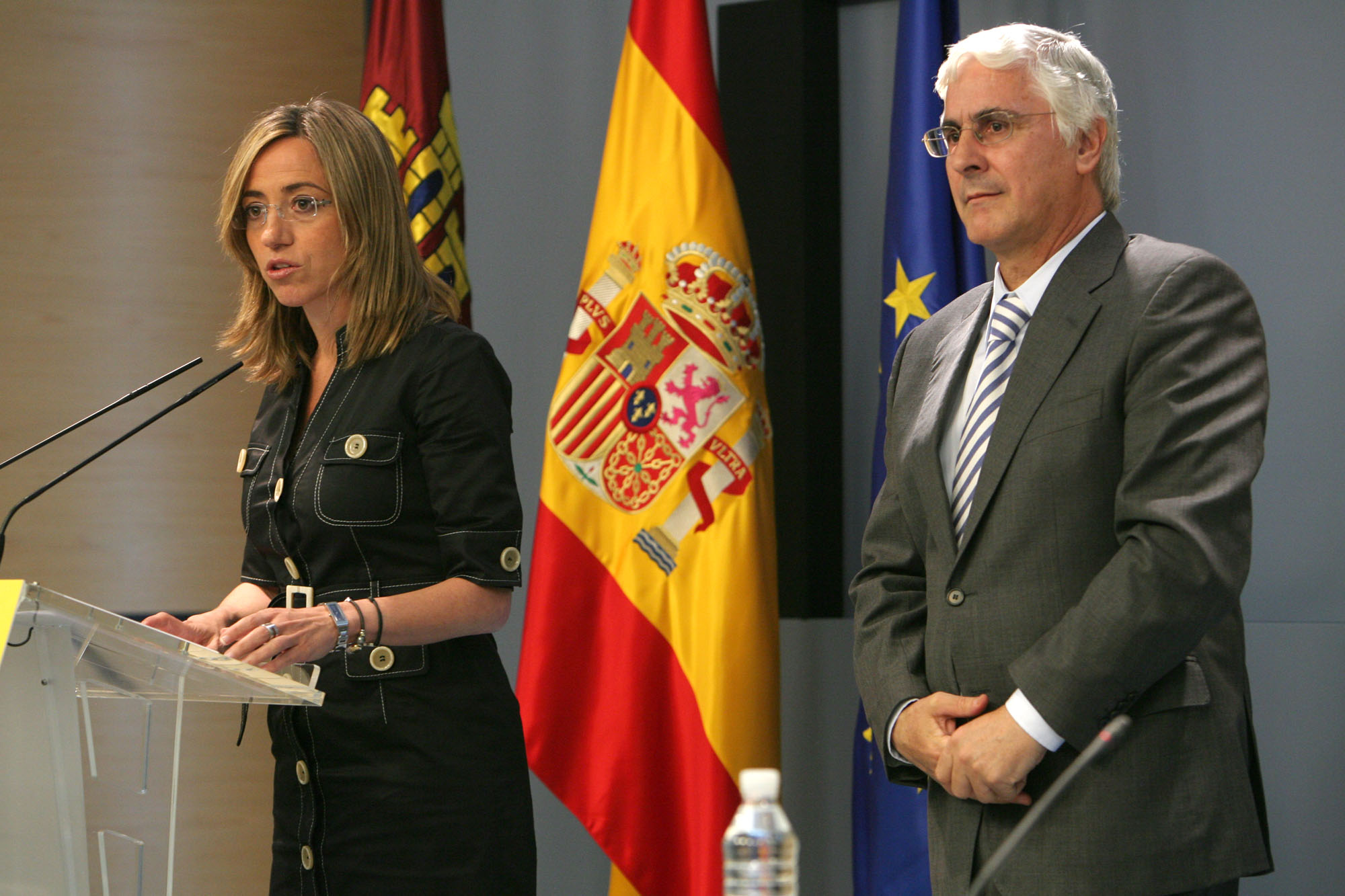 El presidente de la Junta de Comunidades de Castilla-La Mancha, José María Barreda, y la ministra de Defensa, Carme Chacón en la firma del convenio