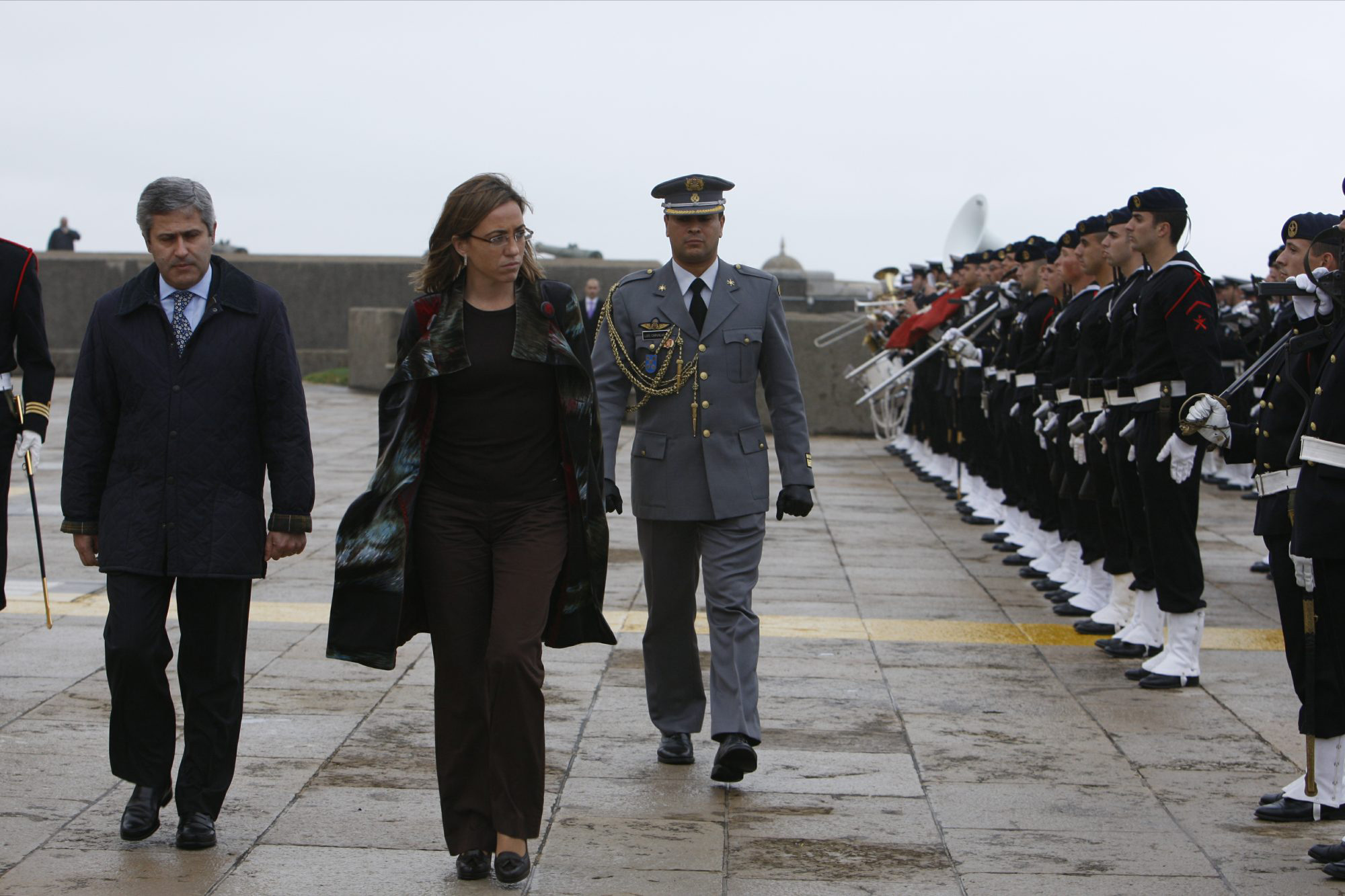 La ministra de Defensa Carme Chacón junto a su homólogo portugués Nuno Severiano Teixeira pasa revista a la fuerza portuguesa