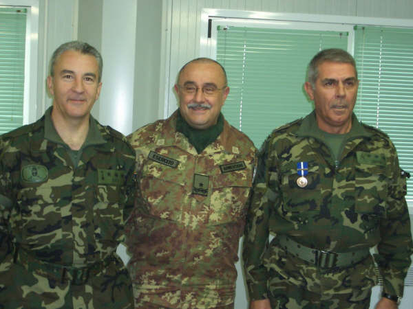 El Coronel entrante (izq) y saliente (drcha) posan junto al  general italiano Giovanni Armentani