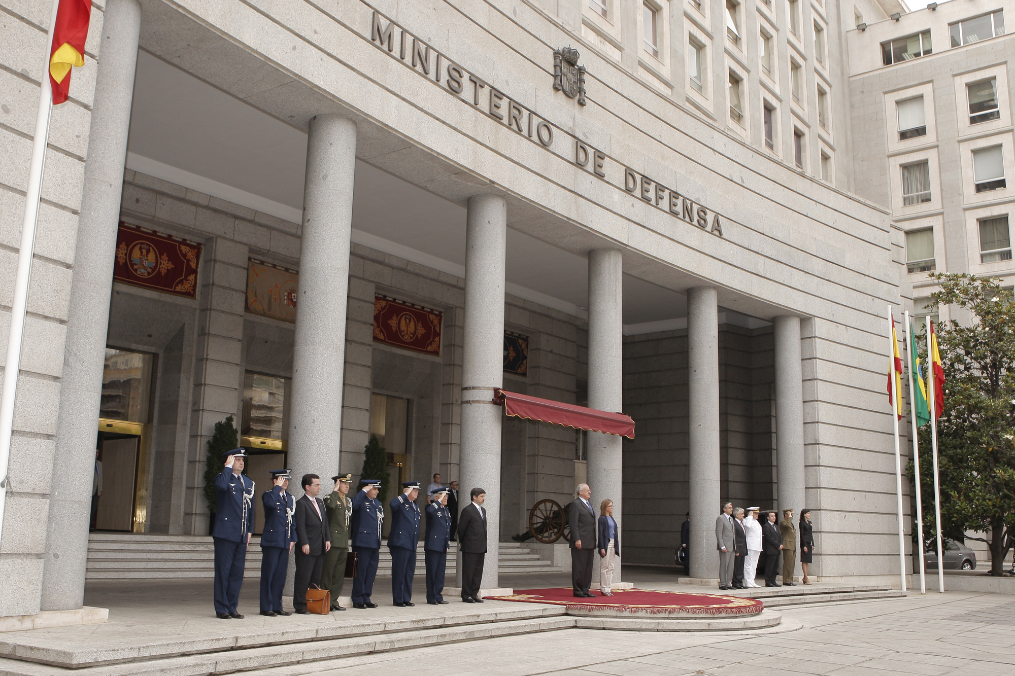 La ministra de Defensa Carme Chacón con su homólogo brasileño Nelson Azevedo Jobim reciben honores