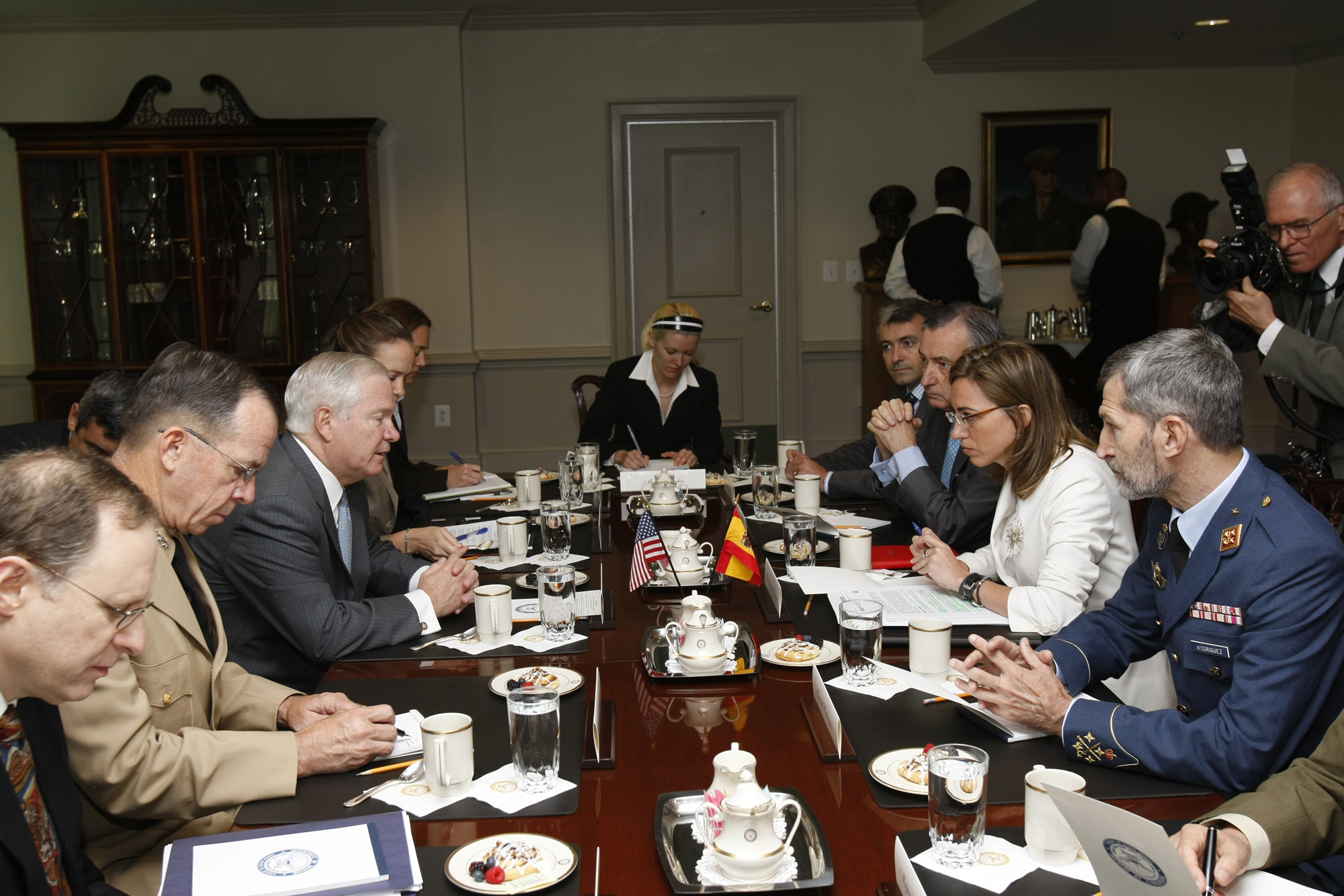 Carme Chacón, ministra de Defensa en el Pentágono en una reunión bilateral con el secretario de Defensa estadounidense, Robert Gates