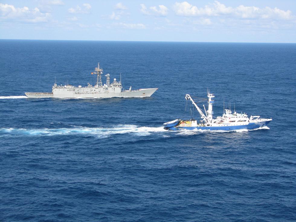 La Fragata Numancia junto al atunero español Campolibre Alai en aguas situadas al Este de Somalia y Kenia