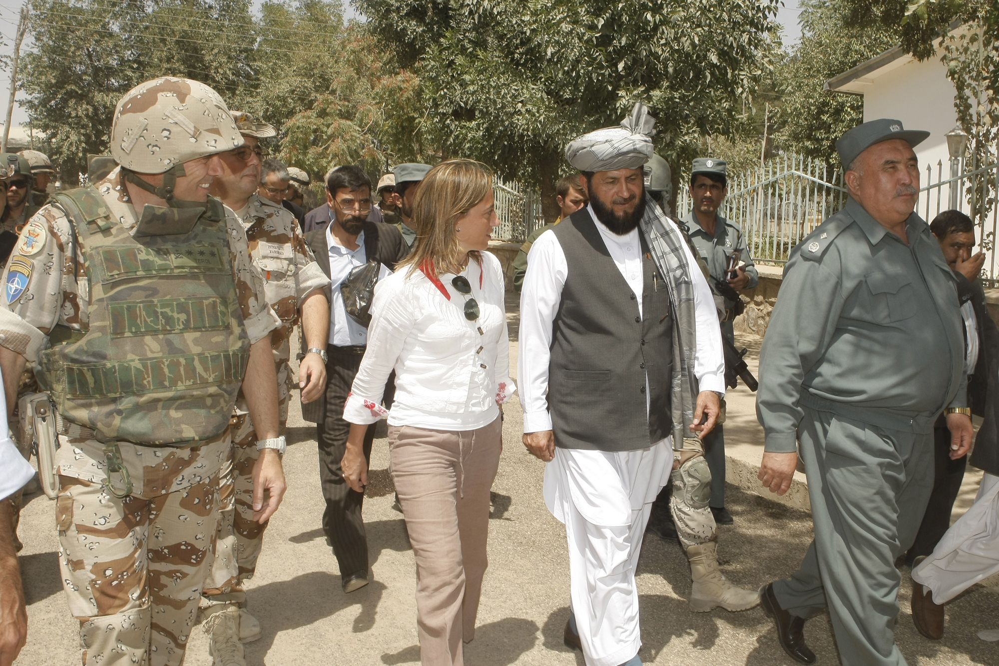 Carme Chacón, ministra de Defensa con el Coronel Carlos Terol y gobernador provincial de la provincia de Badghis en Qala i Naw
