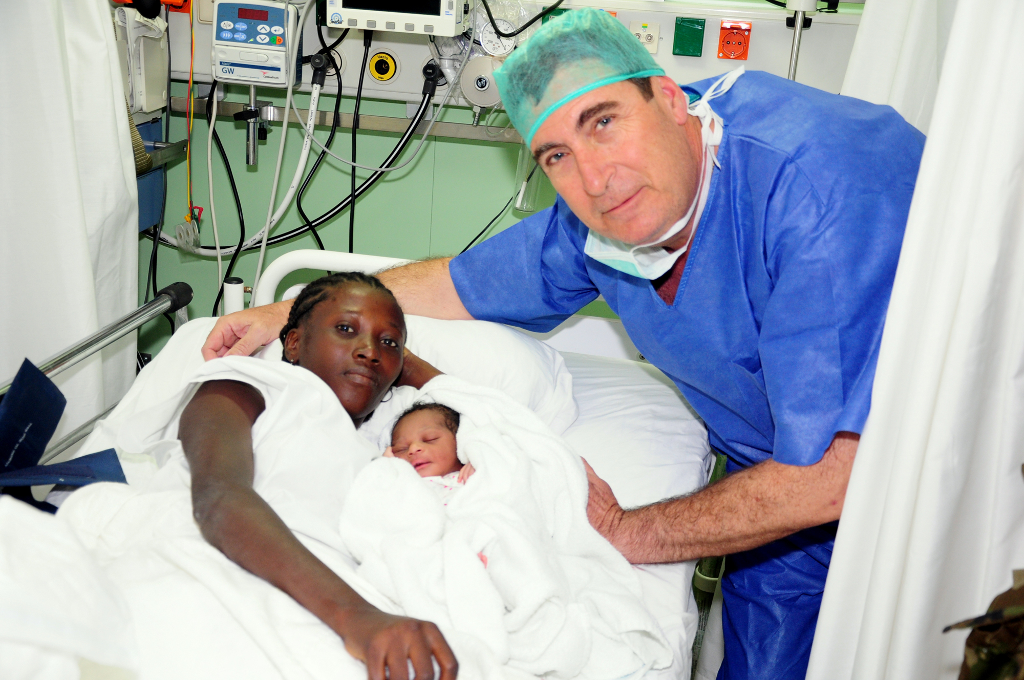 Uno de los ginecólogos que atendieron el parto en el buque 'Castilla' con la madre y el recién nacido