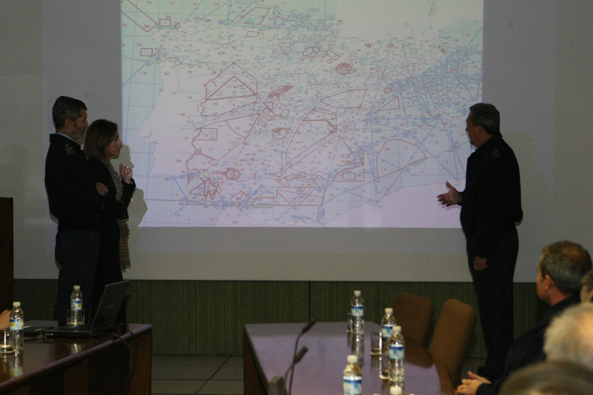 La ministra de Defensa durante la reunión con el Jefe del Estado Mayor de la Defensa y el Jefe del Estado Mayor del Aire