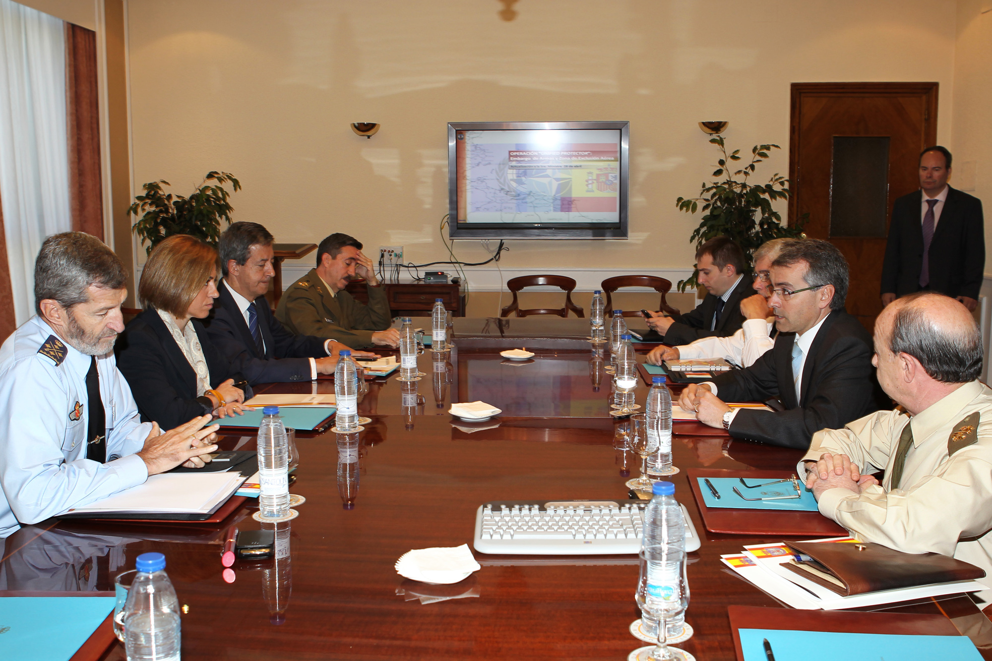 La ministra de Defensa durante la reunión en el EMAD sobre el desarrollo de la misión en Libia