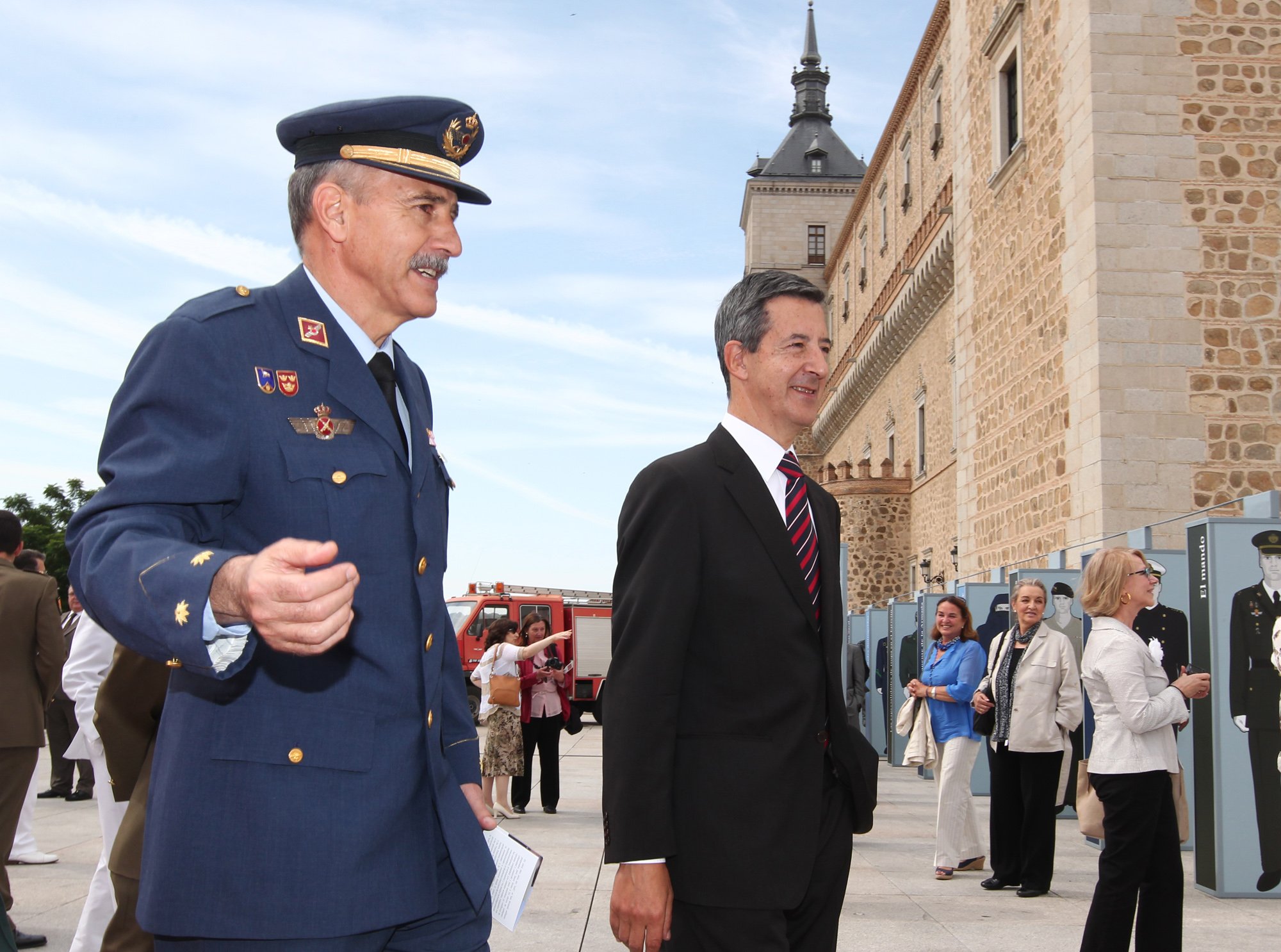 Constantino Méndez durante su visita a la exposición acompañado por el teniente coronel Flores