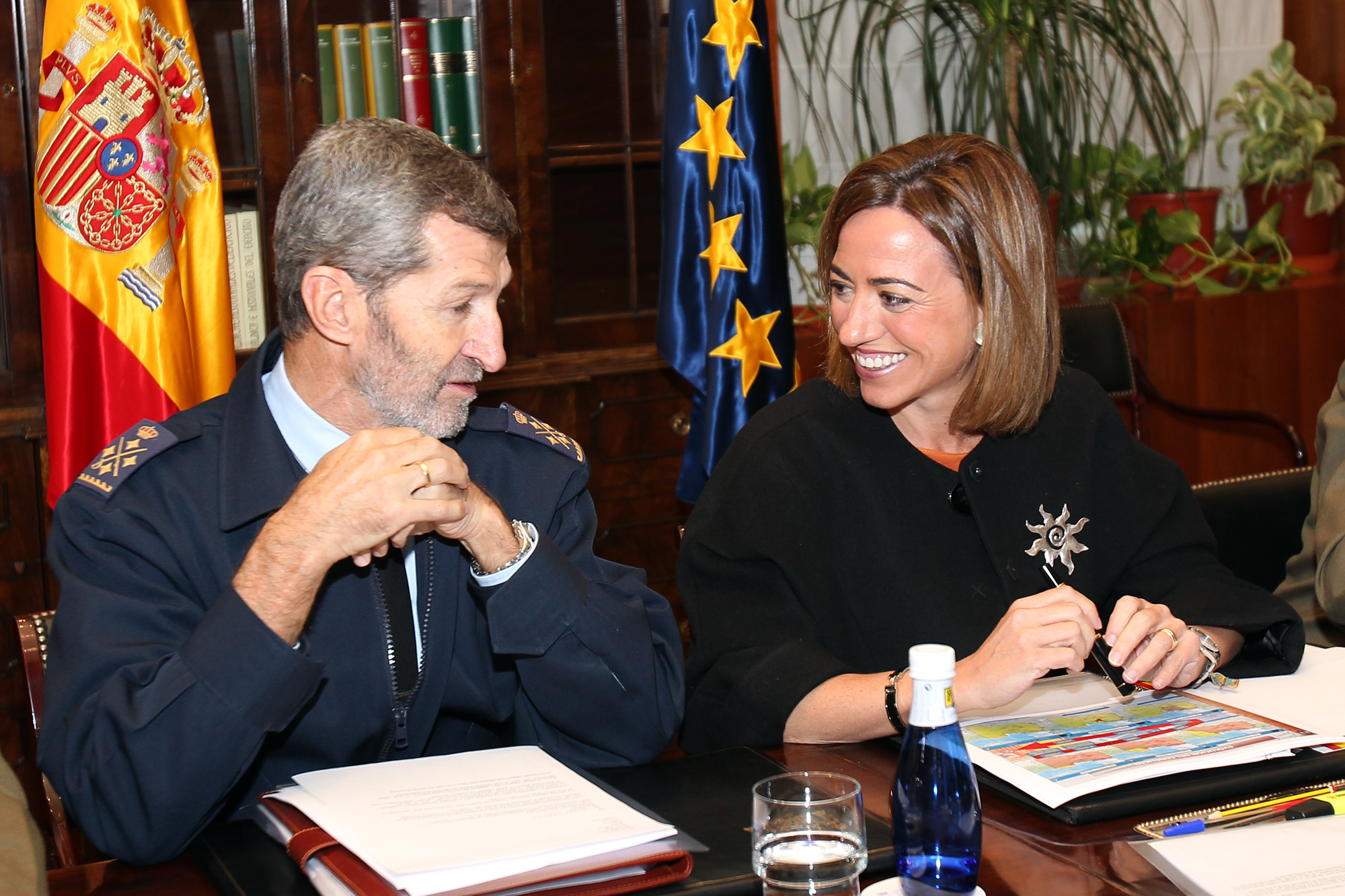 La ministra de Defensa junto al Jefe del Estado Mayor de la Defensa durante la reunión para analizar la situación en Libia