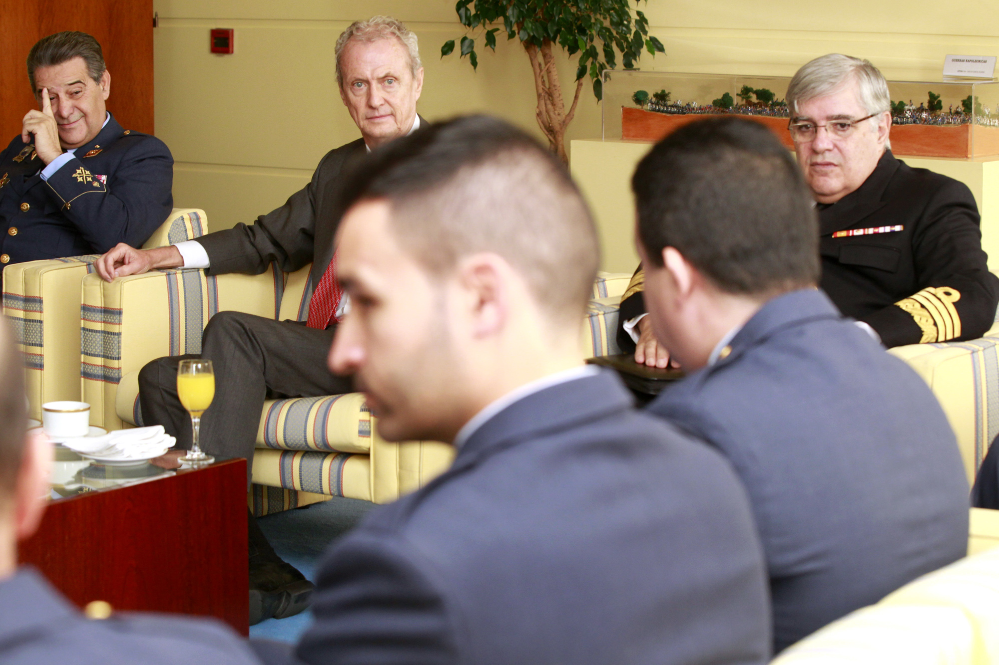 El ministro de Defensa, Pedro Morenés,ha recibido a una comisión de los participantes en las aeroevacuaciones,en la sede del Ministerio.