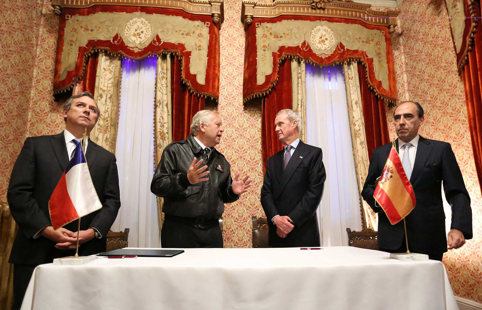 En presencia del ministro de Defensa, Pedro Morenés, y su homólogo chileno, Jorge Burgos se firma el acuerdo de la comisión mixta hispano-chilena entre el secretario general de política de Defensa, Alejandro Alvargonzález, y de parte chilena por el subsecretario, Marcos Robledo, en Punta Arenas