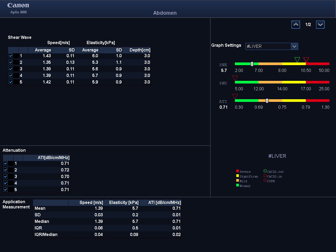 Elastografía: es una técnica que permite evaluar el grado de fibrosis (dureza) del hígado en diferente tipo de enfermedades. Lo que ha permitido reducir el número de biopsias hepáticas por esta causa. Contamos con 2 técnicas elastográficas: ARFI (Acoustic Radiation Force Impulse) y SWE (Shear wave Elastography).