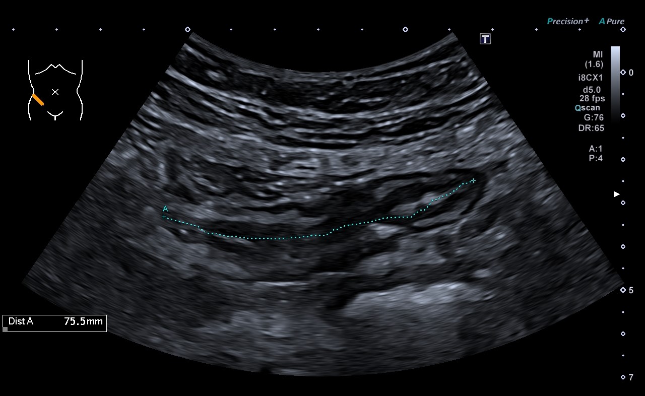 Ecografía intestinal: con la obtención ecógrafos de nueva generación y de sondas de alta frecuencia, podemos evaluar el tubo digestivo, por lo que estamos usando esta ventaja para el diagnóstico, evaluación y seguimiento de pacientes con enfermedad inflamatoria intestinal.