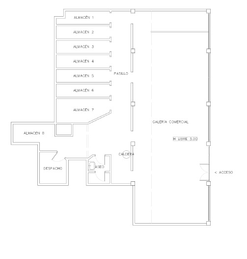 - El local se encuentra en el edificio domiciliado en la calle Juan Español, número 38 de Madrid, es decir, en el barrio de Moscardó – 125 del distrito de Usera – 12 de la capital.Concretamente en la zona oeste del barrio dentro de un área muy cercana a la carretera A-42 Madrid – Toledo.Se trataría de uno de los locales de los pertenecientes a ese edificio con salida a la calle Manuel Noya.El inmueble se encuentra, en términos generales, en buen estado de uso aparente, no existiendo patologías estructurales e instalaciones funcionando correctamente.Presenta diferentes deficiencias de baja gravedad, relativos sobre todo a los paramentos interiores (suelos, falsos techos, paredes, etc.).Este se distribuye en una estancia principal con clara vocación comercial principal, 8 almacenes, 1 baño y un despacho. Cuenta con una altura libre de 3 metros en su estancia principal.