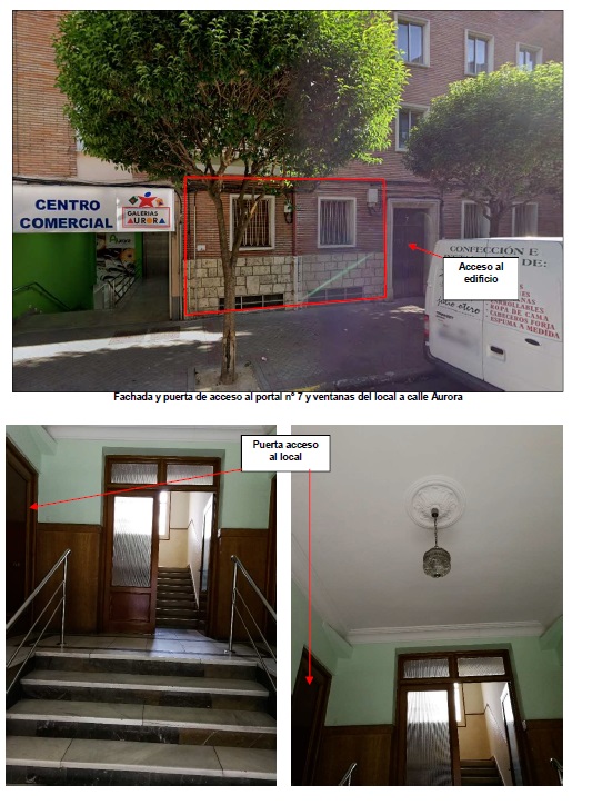 Se ubica en la planta baja del portal nº 7 de la calle Aurora, a mano izquierda en el sentido de entrada al edificio, y se accede al mismo desde el portal. No cuenta, por tanto, con acceso directo desde la calle.Se trata de un local comercial que tiene forma rectangular. Se sitúa en planta baja, si bien a una cota elevada respecto al nivel de la calle. Es necesario salvar 6 peldaños para alcanzar el rellano en el que se encuentra la puerta de acceso. Cuenta con fachada a la calle Aurora y a patio interior de manzana.Se encuentra actualmente sin uso, y distribuido en vestíbulo y cuatro estancias con dos ventanas orientadas a calle Aurora y una al patio trasero. No cuenta con aseo. La puerta de acceso es de madera, y la carpintería de los huecos de fachada de madera con vidrio sencillo, persianas, y enrejado metálico exterior. La parte superior de la fachada principal es de ladrillo visto, y el zócalo inferior de piedra natural. Presenta solado de baldosa cerámica, paredes revestidas de yeso, y no cuenta con falso techo.En cuanto a las instalaciones, cuenta con instalación de fontanería y saneamiento en el lavabo situado en una de las estancias, y de electricidad y calefacción, todas ellas anticuadas y en desuso.En el semisótano del bloque número 7, existen varias dependencias que son zonas comunes, y tienen su acceso desde el patio central del conjunto inmobiliario. También es zona común el pasaje de acceso al patio central situado en la calle Ingenieros.La superficie total construida del local es de 82,97 m2, de los cuales 53,08 m2 corresponden a la superficie que encierra el perímetro del local y los restantes 29,89 m2 corresponden a la parte proporcional de elementos comunes.- Calificación: