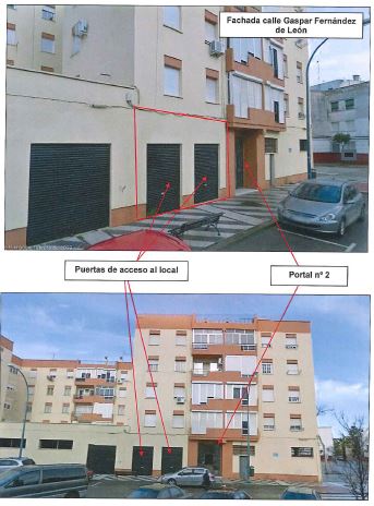Se encuentra en el término municipal de San Fernando (Cádiz), en la planta baja de un edificio de viviendas situado en la calle Felipe II, 1-3-Bajo-13. Tiene forma irregular, con tres paredes perimetrales medianeras, teniendo dos entradas por la calle Gaspar Fernández de León. Las paredes exteriores están enfoscadas y pintadas. Las puertas de acceso son persianas enrollables metálicas. Para el acceso al local tiene un peldaño de 8 cm. Interiormente es diáfano, a excepción de una pequeña habitación. Tiene el suelo de terrazo, falso techo de escayola dejando una altura libre de 3,00 metros, con algunas paredes enfoscadas y pintadas y otras sin revestir. Está asentado en el terreno directamente, no existiendo sótano bajo él.
