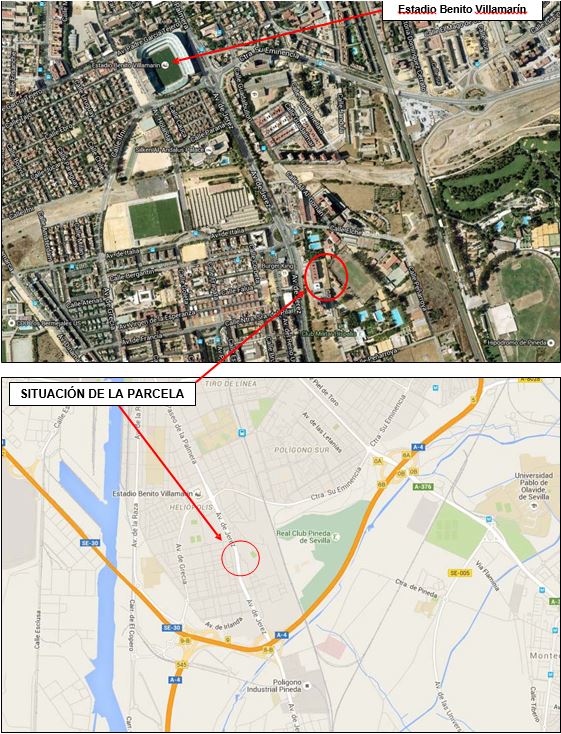 Las tres fincas se encuentran en el municipio de Sevilla, en el barrio de Pineda, al sur de la ciudad, junto a la Avenida de Jerez.