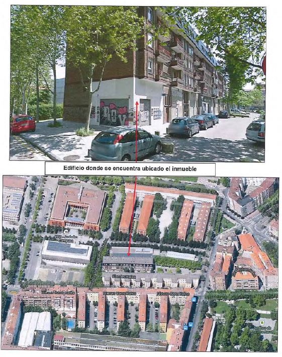 El local se encuentra en el término municipal de Vitoria, dentro del conjunto inmobiliario formado por los portales nº 12 y 14 de la calle Flandes. En la planta baja del portal nº 14, a la izquierda del portal, señalado como local 1.Tiene acceso independiente desde la calle Francisco Tomás y Valiente. El local es prácticamente cuadrado. Hace esquina con la calle Flandes y la calle Francisco Tomás y Valiente que es por donde tiene su entrada. Las fachadas se encuentran alicatadas y poseen dos grandes ventanales metálicos, protegidos con persianas metálicas ciegas. Interiormente, presenta una zona principal diáfana y otra auxiliar separada de la principal por un muro de ladrillo cara vista que no llega al techo. Esta zona auxiliar dispone de un pequeño baño y aseo. El solado es de tipo cerámico y tiene falso techo de escayola, siendo la altura libre en la zona principal de 3,24 metros y de 2,20 metros en la zona de servicio.