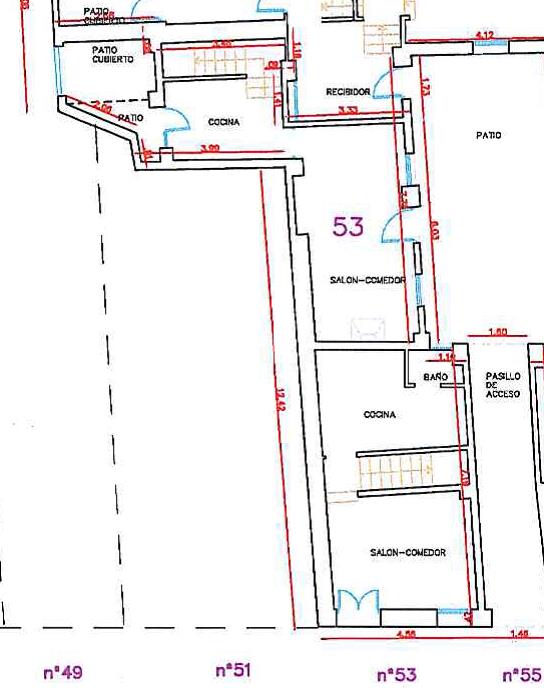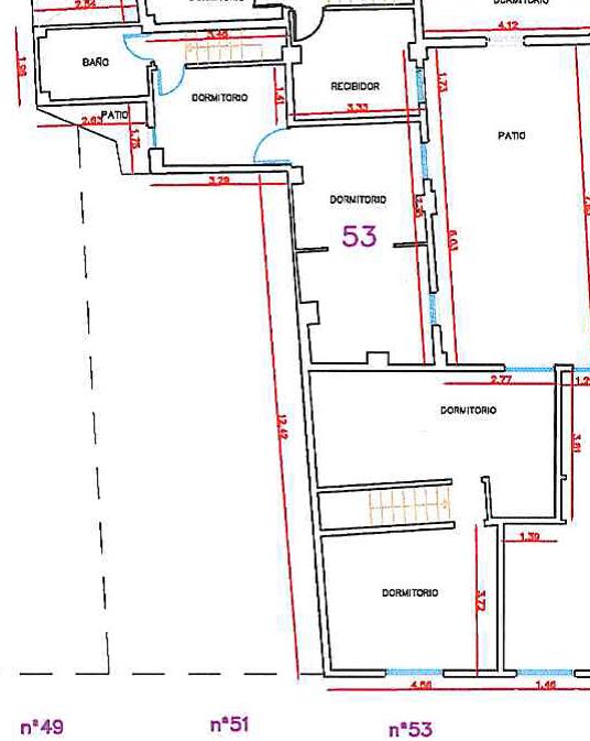 Se trata de una VIVIENDA UNIFAMILIAR situada entre medianeras, que ocupa una parcela con forma de “L”, con aproximadamente 4,50 metros de fachada, compuesta por DOS plantas, ocupando, cada una de ellas, según catastro, una superficie de 77 y 78 m². En la fachada cuenta con tres huecos, la puerta de acceso y una ventana en la planta baja y otra ventana en la planta primera. Está compuesta de una planta baja donde se ubica el salón, el comedor, la cocina, un baño, el acceso a la vivienda desde la calle Barrio Bajo, el acceso a la vivienda desde el patio común y la escalera de acceso a la planta alta, donde se ubican cuatro dormitorios y un baño.