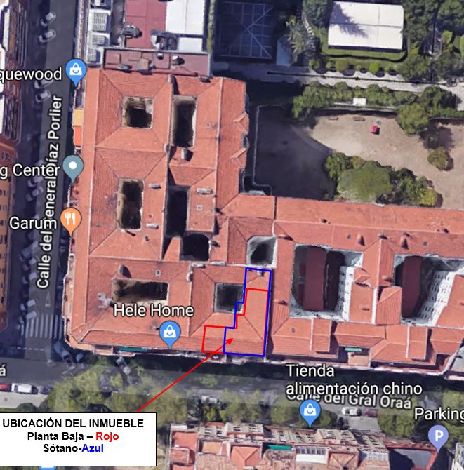 La propiedad se encuentra en el término municipal de Madrid, en el edificio señalado con el nº 82 de la calle General Oraá.Está situada en la planta baja, a la derecha del portal de entrada al edificio.Con acceso principal desde la calle General Oraá y otro acceso secundario desde la caja de escalera del portal del edificio.Se trata de un local comercial que consta de dos plantas comunicadas entre sí mediante escalera de obra situada al fondo de la planta baja.