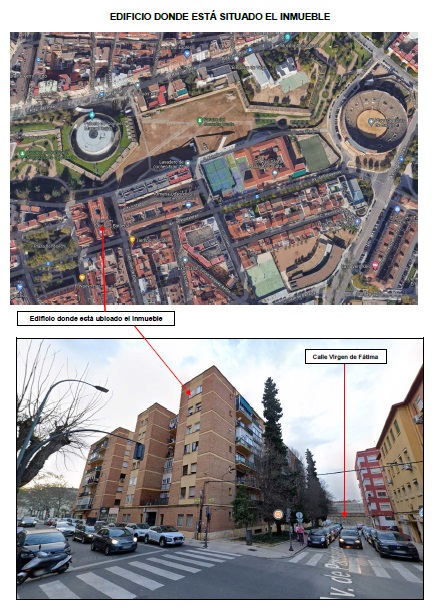 La propiedad se encuentra en la ciudad de Badajoz, dentro del conjunto inmobiliario que forman los portales nº 8 de la calle Stadium, nº 5 y 6 de la plaza Jesús Delgado Valhondo, nº 3 de la avda. Pardaleras y nº 2 de la calle Virgen de Fátima.