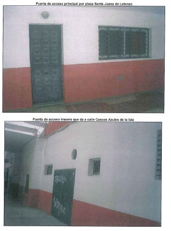 - La propiedad se encuentra en el término municipal de San Fernando (Cádiz), en la planta baja de unos edificios de viviendas y pasajes situados en la Plaza Santa Juana de Lestonac, 4 Bajo-1.Se trata de un local comercial con forma rectangular con dos (2) paredes perimetrales exteriores que dan a la Plaza Santa Juana de Lestonac (principal) y a la calle Cascos Azules de la Isla (trasera); las otras dos (2) paredes son medianeras con otros locales.Las paredes exteriores están enfoscadas y pintadas. Tienen dos (2) huecos de ventana a la fachada trasera y uno (1) en la principal, con carpintería de aluminio anodizado, protegidos con reja fija de barrotes y pletinas de acero. La puerta principal de acceso desde la plaza es metálica de una (1) hoja abatible. La puerta de acceso trasera es metálica de dos (2) hojas abatibles.El local tiene un desnivel respecto de la calle de 3 cm. Interiormente, el local está dividido en varias estancias (cinco (5) estancias y un (1) aseo). Tiene solado de terrazo, falso techo de escayola con una altura libre de 3,13 m, paredes enfoscadas y pintadas, y alicatadas en el aseo.El local está asentado en el terreno directamente, no existiendo sótano bajo él.La superficie total construida del local es de 115,57 m², de los cuales 104,92 m² corresponden a la superficie del local y los restantes 10,65 m² corresponden a la parte proporcional de elementos comunes.
