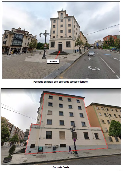 Tiene acceso independiente desde vial público.Se trata de un edificio que consta de planta semisótano (157,20 m²c), planta baja (241,55 m²c) y cuatro plantas (192,44 m²c/planta), cubierta visitable y torreón (52,89 m²c), asentado sobre un solar en forma de L de 227,00 m² de superficie”.La puerta de acceso está situada en la planta baja, a la que se accede salvando seis escalones desde el nivel de calle.El edificio requiere una reforma integral para reunir las condiciones de habitabilidad.Superficies:Superficie registral suelo: 242,42 m².Superficie catastral, suelo: 249 m² y construida: 1.262 m².- Calificación: