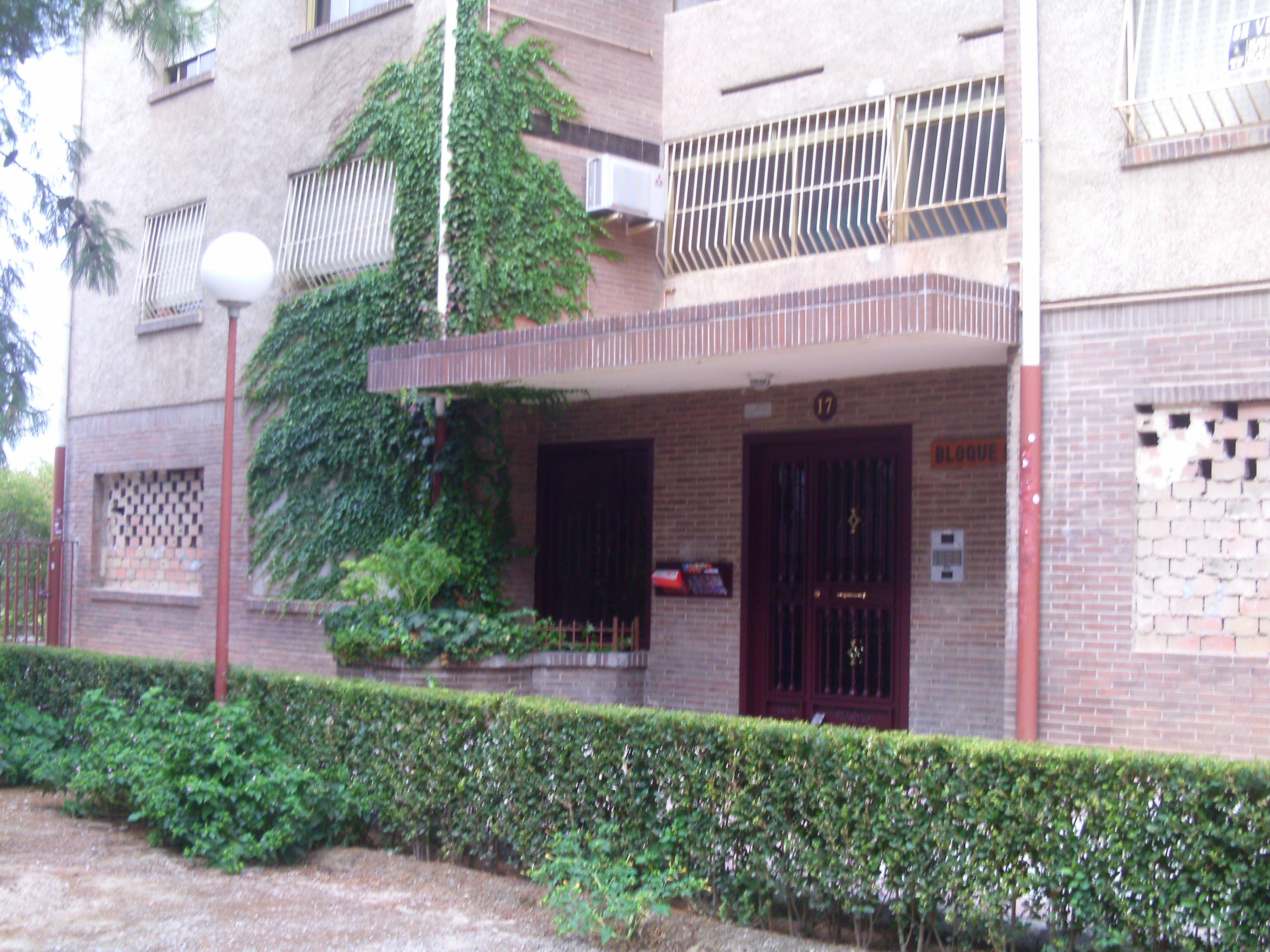 Las fachadas principales son de ladrillo cara vista. El acceso al local se realiza a través de una puerta metálica ciega, la cual es provisional. Todos los huecos se encuentran tapiados con citaras de ladrillo hueco. Las cuatro fachadas que posee, dan a una zona de acceso privativo del conjunto de bloques, también posee paredes que son medianeras con el portal y las zonas comunes de los edificios.