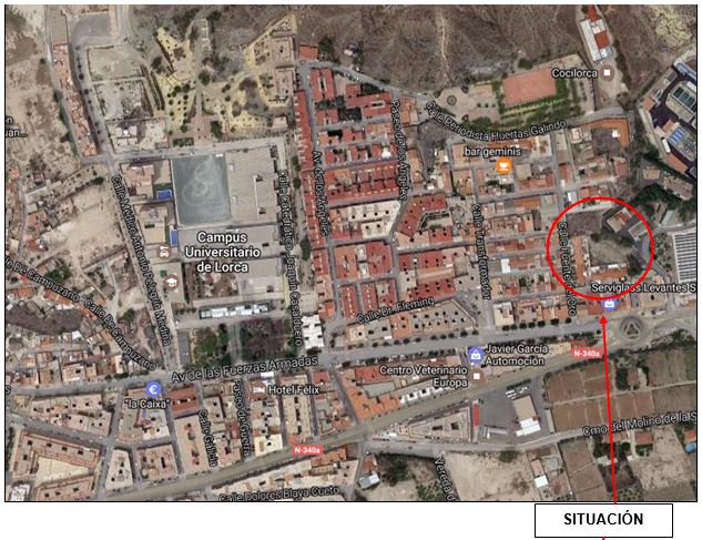 La propiedad se encuentra en el término municipal de Lorca, en la calle Fuente del Oro, en el barrio de Apolonia.