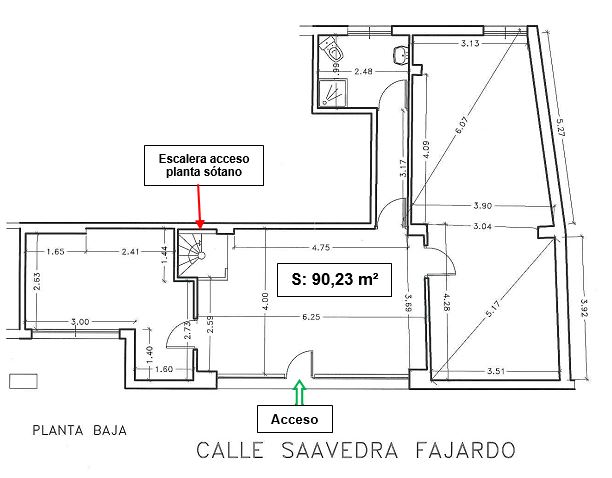 Se trata de un local comercial con forma de polígono irregular, con fachada principal, por donde tiene su acceso, a la calle Saavedra Fajardo.