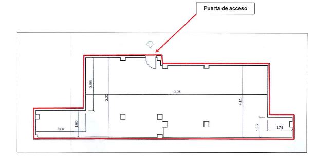 El local tiene una forma sensiblemente rectangular, fragmentada, con dos apéndices en dos extremos.