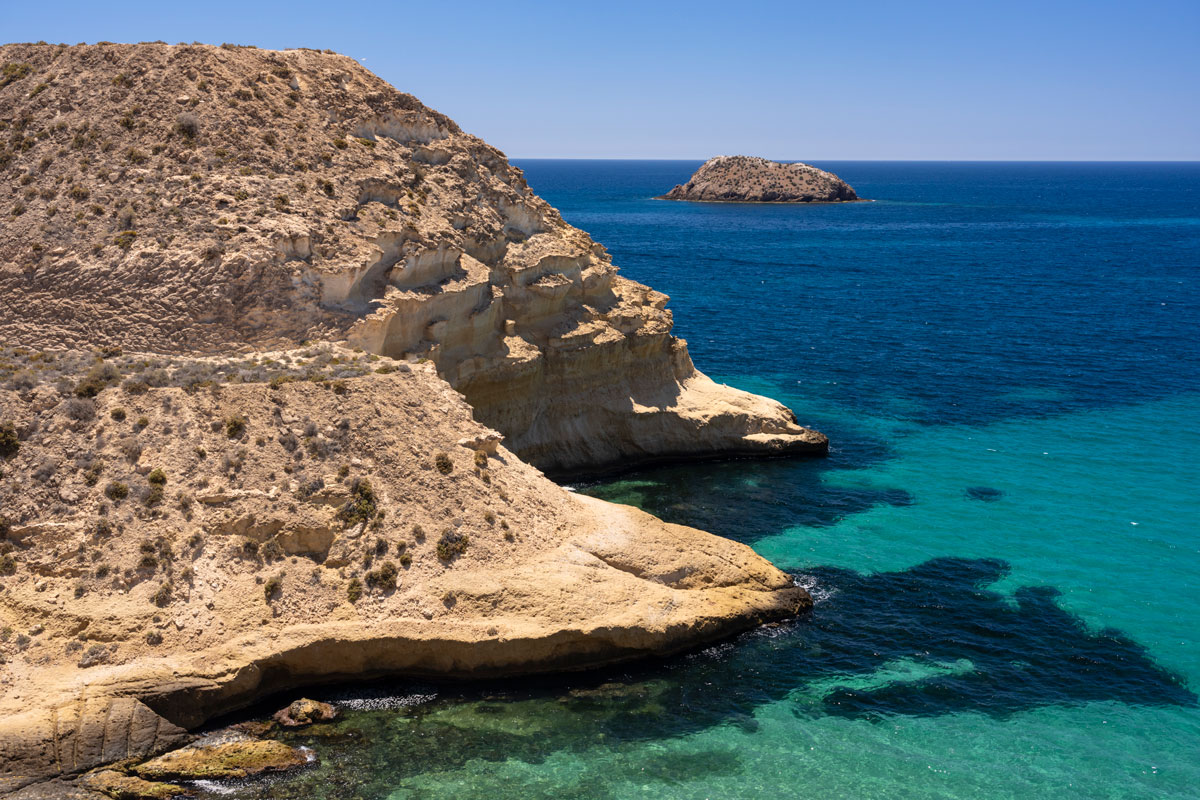 En la bocana de la ría de Mahón, la fortaleza de Isabel II se sitúa sobre la península de La Mola, una cumbre plana y rodeada de escarpados acantilados. Llama la atención el contraste de colores de las rocas de los acantilados, oscuras en la base y de tonos claros las que se sitúan encima. Son rocas separadas por muchos millones de años y con historias muy diferentes.