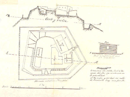 La primera de las edificaciones en construirse fue el Fuerte Viejo, ubicado en el límite occidental del monte. Consta de un cuerpo de casamatas con capacidad para dieciséis piezas de artillería y una caponera situada un poco más abajo. Ambas están comunicadas por un túnel y rodeadas por un foso.