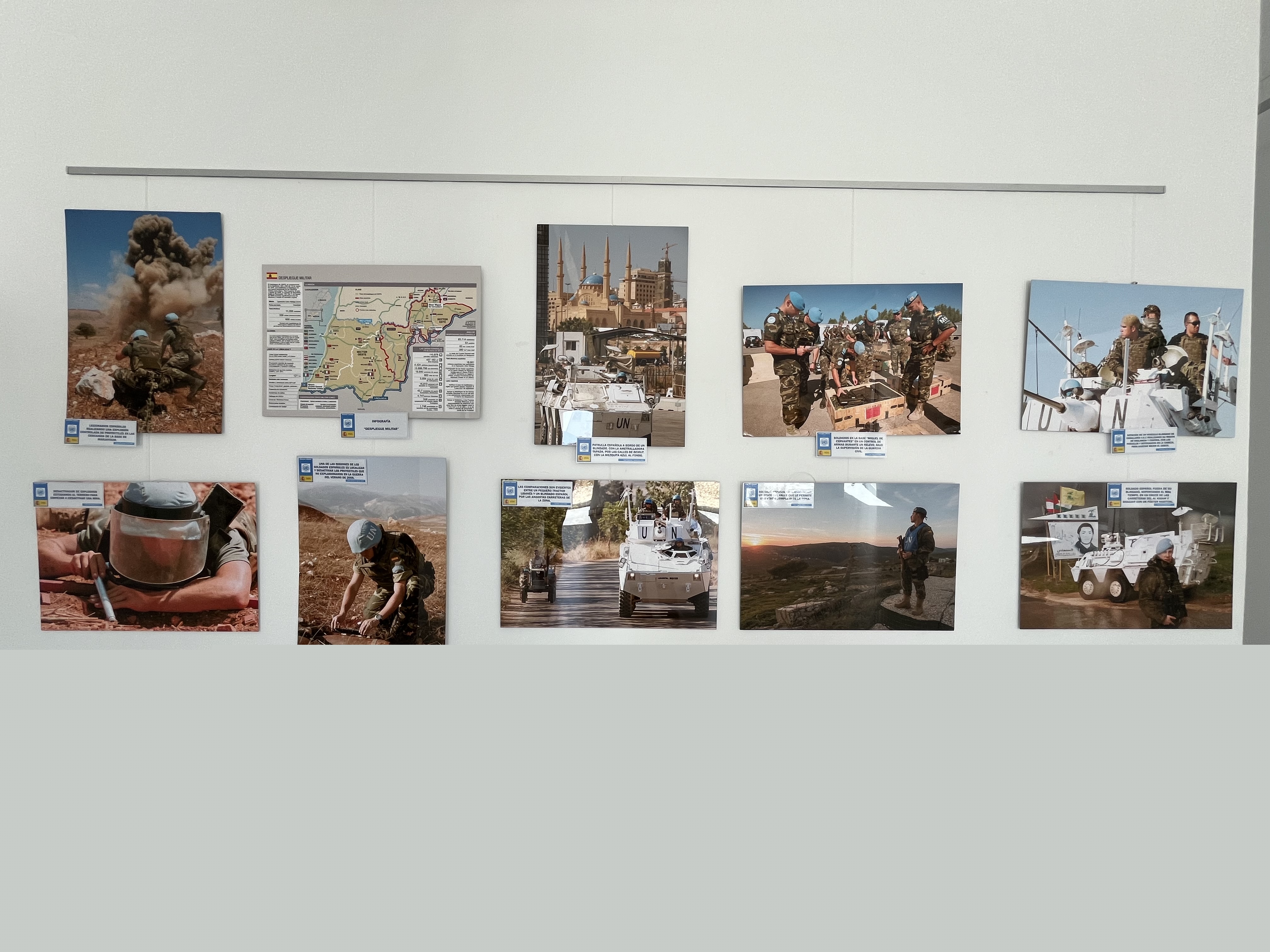 La exposición reúne cuarenta paneles fotográficos, acompañados de contenido explicativo, con increíbles e impactantes imágenes de prestigiosos fotógrafos seleccionadas del libro editado por el Ministerio de Defensa que da título a la muestra, que repasa la participación del ejército español en el Líbano, una misión humanitaria que se viene llevando a cabo desde el año 2006. Las imágenes ilustran la labor pacificadora de las tropas españolas en el sur del Líbano y sirven para describir su quehacer diario y algunos de los logros militares, políticos y sociales de los militares españoles.