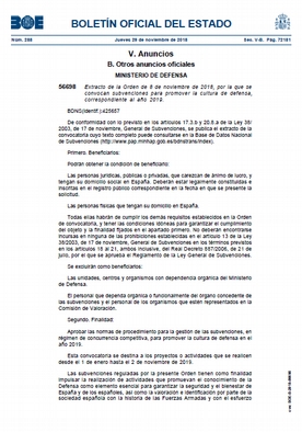 Las bases reguladoras de estas subvenciones fueron establecidas por la Orden DEF/186/2015, de 9 de febrero (BOE núm. 36, de 11 de febrero).