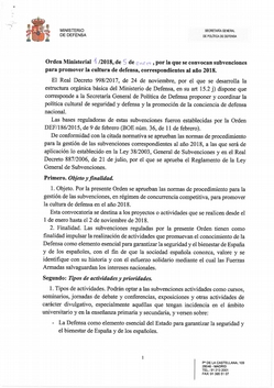 El Real Decreto 998/2017, de 24 de noviembre, por el que se desarrolla la estructura orgánica básica del Ministerio de Defensa, en su art 15.2 j) dispone que corresponde a la Secretaría General de Política de Defensa proponer y coordinar la política cultural de seguridad y defensa y la promoción de la conciencia de defensa nacional.