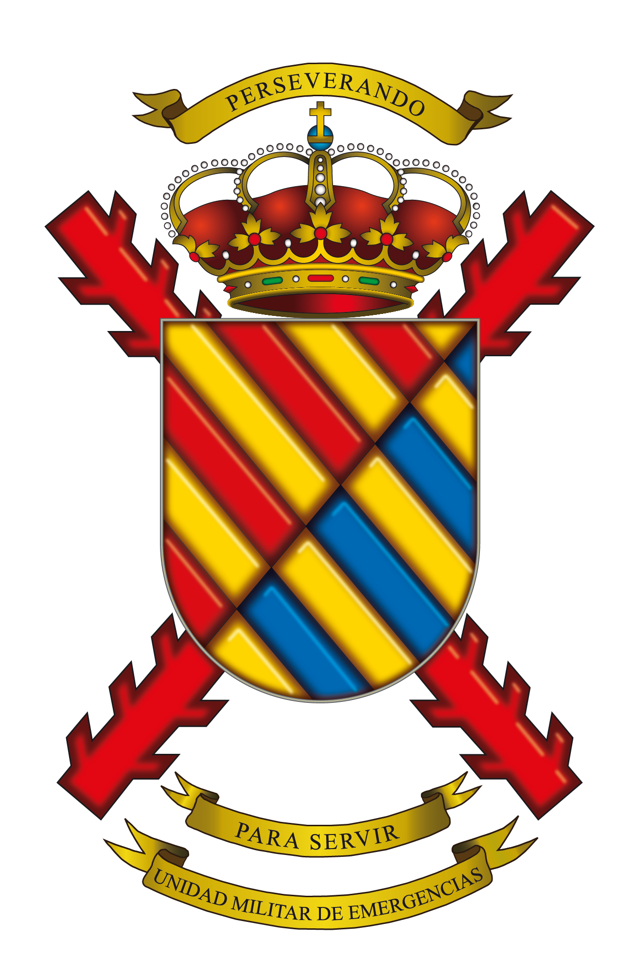 Escudo Oficial de la Unidad Militar de Emergencias con atributos (PDF) (PNG) (JPG)